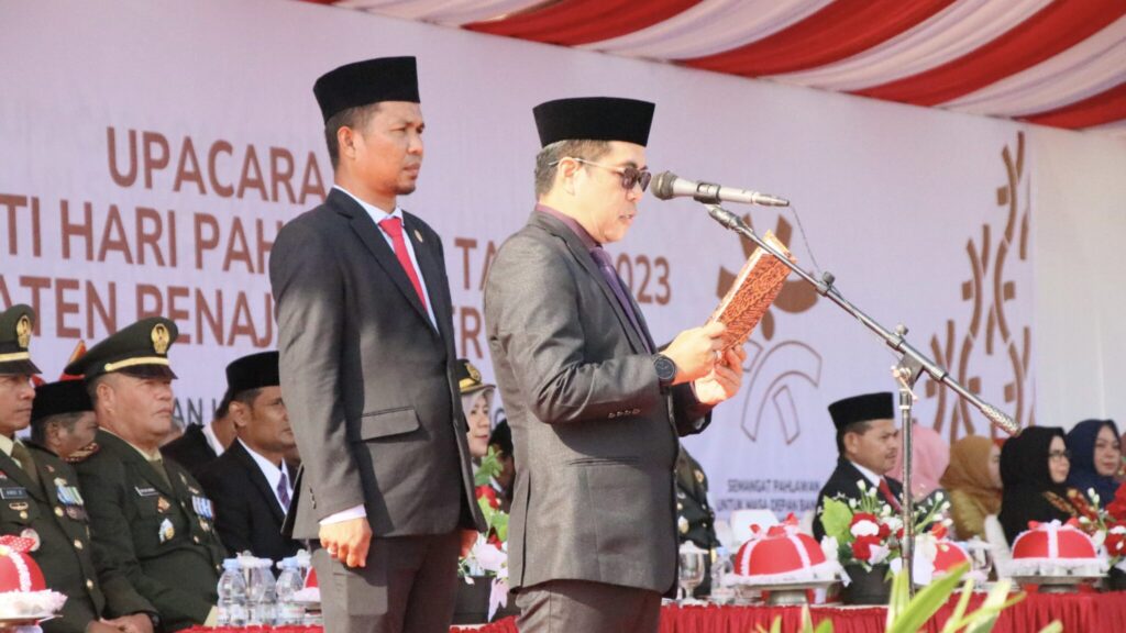 SumberNusantara, PENAJAM – Ketua Dewan Perwakilan Rakyat Daerah (DPRD) Kabupaten Penajam Paser Utara (PPU) Syahrudin M Noor menghadiri upacara peringatan Hari Pahlawan Nasional dengan mengusung tema Semangat Pahlawan untuk Masa Depan Bangsa dalam Memerangi Kemiskinan dan Kebodohan, kegiatan tersebut berlangsung di halaman Kantor Bupati PPU, Jum’at (10/11/2023).
